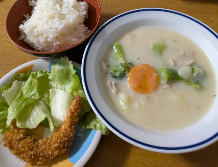 電話で「今日のご飯なに〜?」と話してたら、クリームシチュー🤤