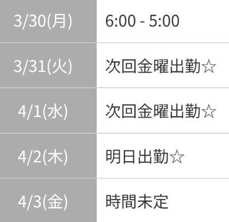 出勤予定🌸明日から連休